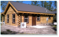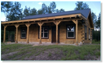With 20’ x 35’ outside dimensions and an additional 8’ front porch this kit cabin has endless possibilities. Designed to be a 3 bedroom, 1 full bath with a 10’ x 10’ loft this kit is roomy enough for the family. The vaulted ceilings with exposed timbers, and Oak log walls give a spacious yet rustic feeling to this cabin. This kit cabin makes the perfect full time home, weekend get-a-away, lake house, guest house or warm and dry base camp for hunting season. The simple construction and size of this kit cabin make it a great project for even a novice builder.