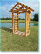 This Garden Arbor kit is 3’ x 6’ x 7’ which makes this arbor the perfect size to add to the garden or landscape. Built on a skid system this arbor is easily moved around the yard or garden.Our Garden Arbor make a great wedding accessory. What bride wouldn’t love saying her vows to the love of her life under this gorgeous Arbor.This Arbor kit is created from Oak and will be cherished part of the garden for generations.