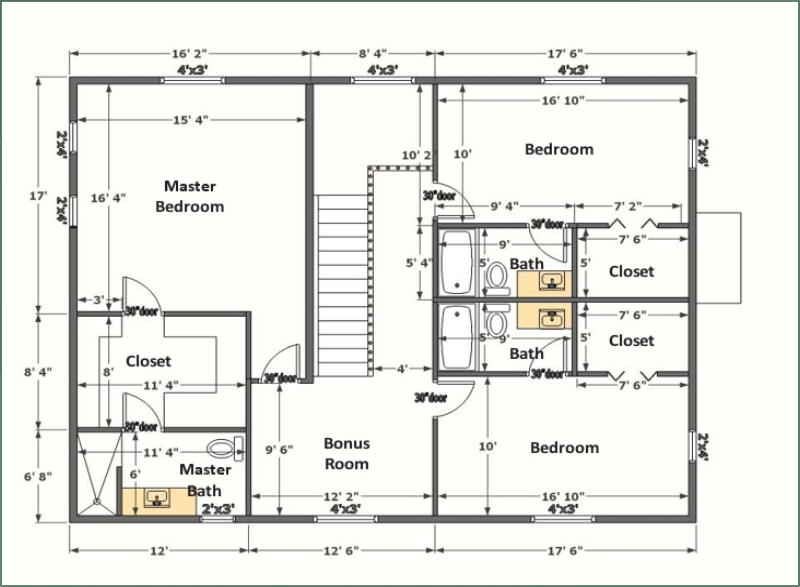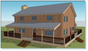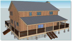 The Frontier Oak log cabin kit is a 2 story traditional style Home. This kit home has 3 bedrooms with large walk in closets, 3 and ½ baths, an office, a very large kitchen with room for the entire family to gather. The rooms of this kit are spacious but keep a warm comfortable feeling.The exterior of this kit features a wrap around deck with covered porches on the front and back .The frontier is 1344 square feet on the main floor for a total of 2500 square feet. The exterior dimensions of the frontier kit are 32’ x 42’ with 12’ covered porches on the front and 8’ covered porch on the rear.This kit can be built on a basement, crawl space or slab.