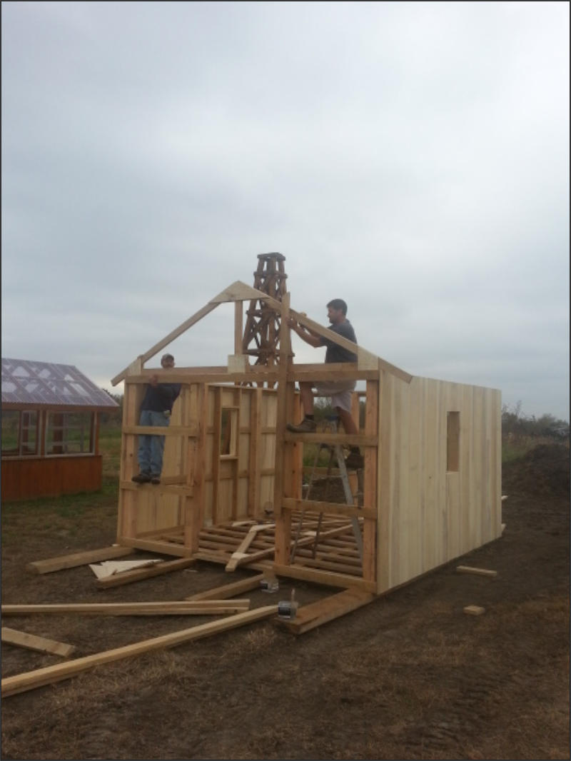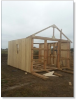 the yard. This building is made from Oak lumber and Oak siding so it is