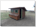 This kit is 6’ x 8’ and has additional nesting boxes. The boxes have outside access for easy