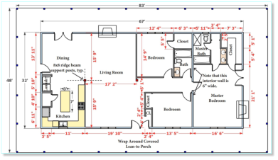 8” x 10” Porch Headers 4” x 8” Porch Rafters 2” x 10” Fascia Þ” x 5” Oak Shiplap Ceiling Þ” x 8” Oak Boards Þ” X 2” Battens 4” x 8” / 4” x 10” Floor Joist (2nd floor) Þ” x 3” Oak Trim Þ” x 2” Oak Trim Þ” x 5” Oak Trim2” x 6” Spindles2” x 6” Wall Framing