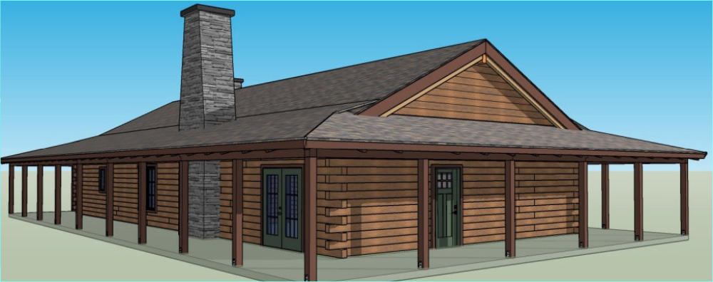 The Riverside Oak log cabin kit comes in 2 sizes. The 2100 square foot kit has a larger livingroom area. The rest of the cabins are the same.This kit cabin has 2 bedrooms and 2 full baths on the main floor and plenty of space for an additional bedroom upstairs. With a full 10’ wrap around porch there is always a place to sit in the shade .
