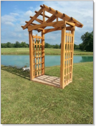This Garden Arbor kit is 3’ x 6’ x 7’ which makes this arbor the perfect size to add to the garden or landscape. Built on a skid system this arbor is easily moved around the yard or garden.Our Garden Arbor make a great wedding accessory. What bride wouldn’t love saying her vows to the love of her life under this gorgeous Arbor.This Arbor kit is created from Oak and will be cherished part of the garden for generations.