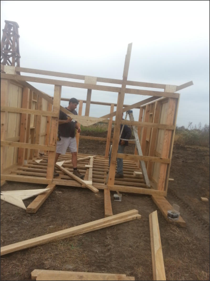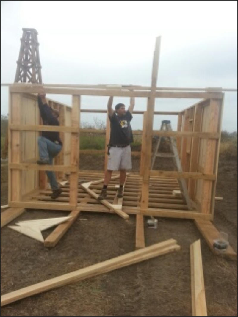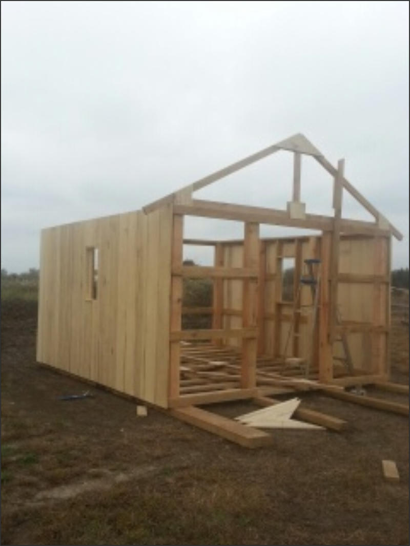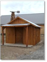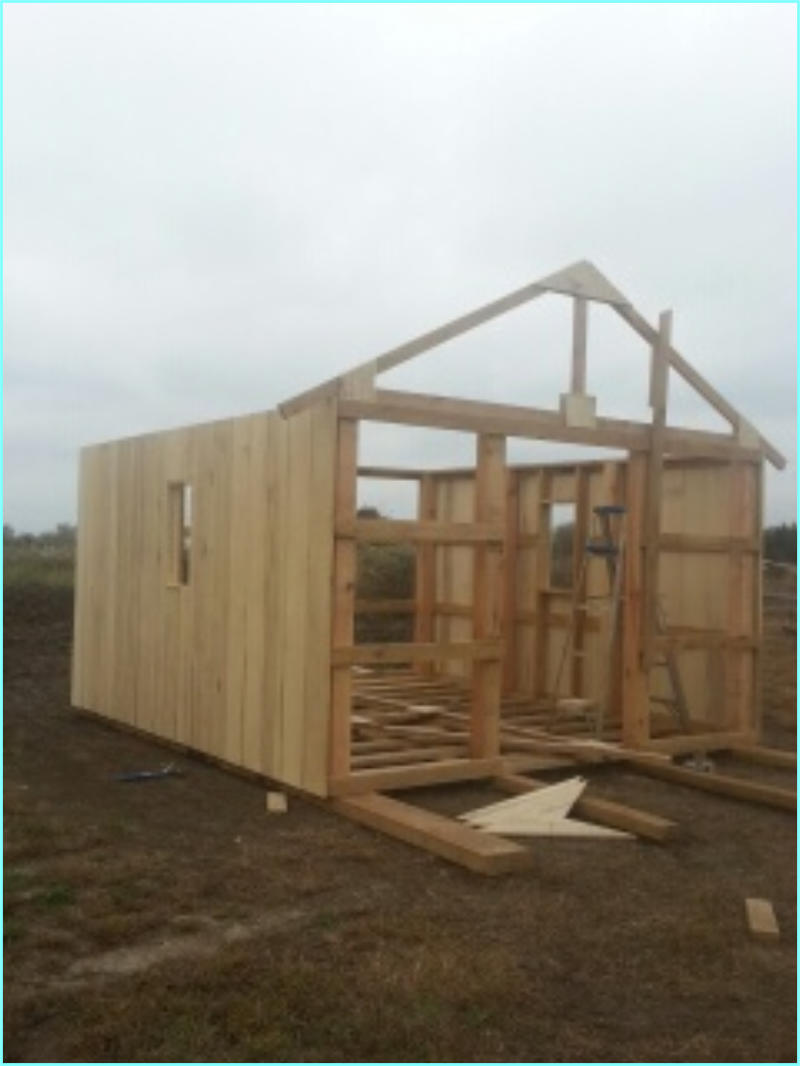 the yard. This building is made from Oak lumber and Oak siding so it is