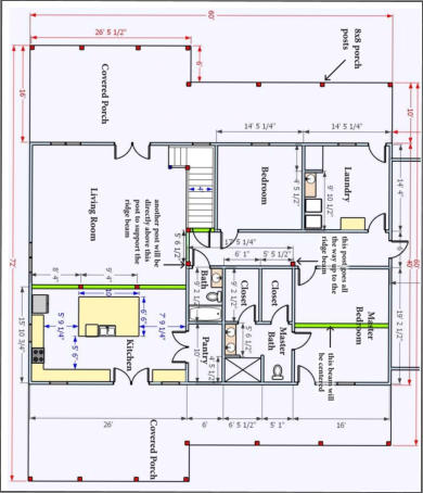 Hybrid Timber Frame House- Option 1- 1980 sq ft