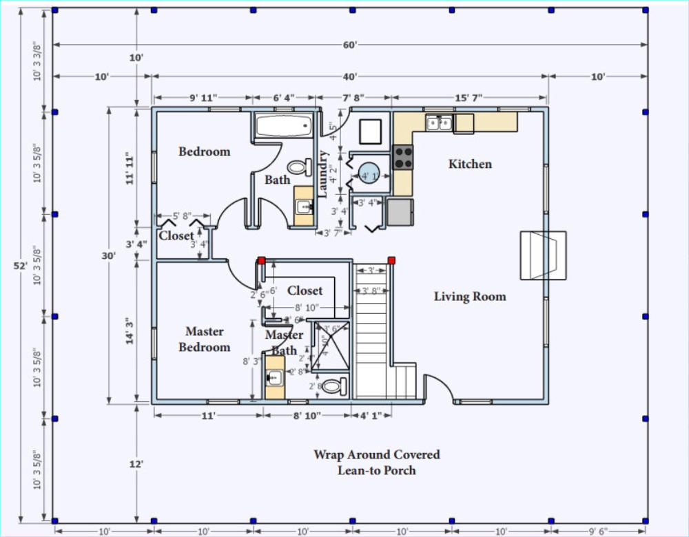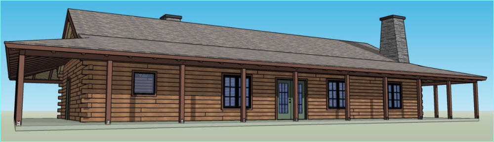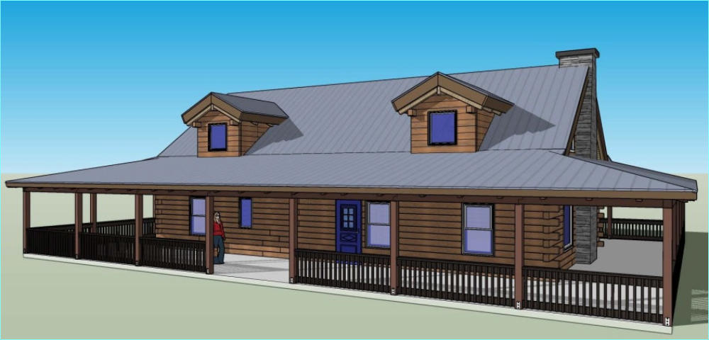 The Riverside Oak log cabin kit comes in 2 sizes. The 2100 square foot kit has a larger livingroom area. The rest of the cabins are the same.This kit cabin has 2 bedrooms and 2 full baths on the main floor and plenty of space for an additional bedroom upstairs. With a full 10’ wrap around porch there is always a place to sit in the shade .
